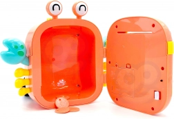 Krab wydaje efekty dźwiękowe, wspiera samodzielność, logikę i kreatywność. Zaprojektowany dla dzieci od 3 lat, wykonany z naciskiem na bezpieczeństwo i łatwość użytkowania. W razie potrzeby zabawkę można zresetować i ustawić nowe hasło.