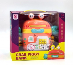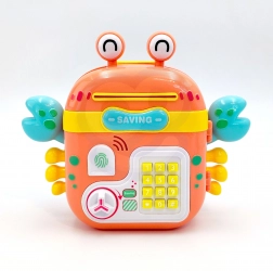 Ten kolorowy krab to coś więcej niż skarbonka – to interaktywny sejf, skarbonka i dziecięcy plecak w jednym. Dzieci mogą przechowywać w nim monety, banknoty i drobne skarby, wprowadzić własne hasło i cieszyć się realistycznymi elementami, takimi jak klawiatura przyciskowa, imitacja czytnika odcisku palca oraz pokrętło do otwierania.