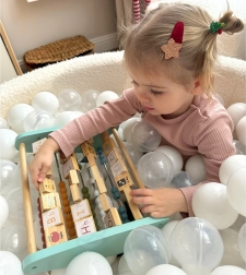Zabawka pomaga rozwijać koordynację ręka-oko, koncentrację, naukę liczb i liter.