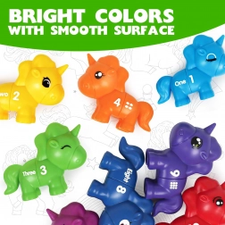 Każdy jednorożec ma liczbę, która pomaga dzieciom uczyć się liczenia podczas zabawy.