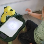 Projektor w kształcie dinozaura rzutuje obrazki bezpośrednio na stół, dzięki czemu dzieci mogą je łatwo odrysowywać. Do dyspozycji jest 24 szablony na 3 dyskach, co zapewnia nieskończoną porcję twórczej zabawy.