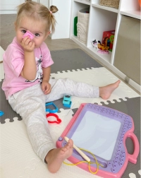 Odkryj zabawną drogę do nauki i rozwijania motoryki małej. Magnetyczna tablica Woopie pozwala dzieciom bezpiecznie ćwiczyć pisanie liter i cyfr, próbować pierwszych rysunków i wyrażać swoją wyobraźnię – bez bałaganu i bez papieru. Jednym ruchem suwaka obrazek się wymazuje i zabawa może zacząć się od nowa.