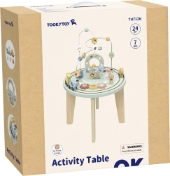 Odkryj drewniany montessori aktywny stolik TOOKY TOY, który dzięki różnorodnym aktywnościom zajmie dzieci na długie chwile. Wspiera pozycję stojącą, rozwija motorykę małą, koordynację ręka–oko, logiczne myślenie oraz kreatywność. W zestawie znajduje się labirynt motoryczny, sorter kształtów, koła zębate oraz pociąg. Wykonany z drewna i malowany nietoksycznymi farbami.