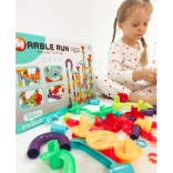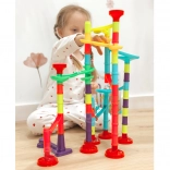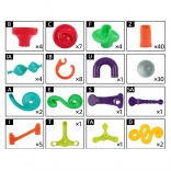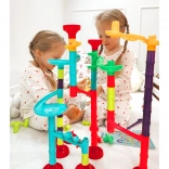 Różne rurki, zakręty, spirale, leje i kolumny pozwalają za każdym razem zbudować nowy i atrakcyjny tor kulkowy. Buduj według instrukcji lub twórz własne pomysłowe trasy.