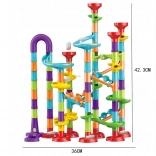 Wysokiej jakości plastikowe elementy łatwo się łączą i dobrze trzymają. Kulki o średnicy ok. 10 mm płynnie poruszają się przez przezroczyste i kolorowe moduły. Złożony tor ma kompaktowe wymiary, więc zmieści się także w mniejszych pokojach dziecięcych.