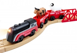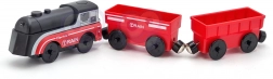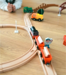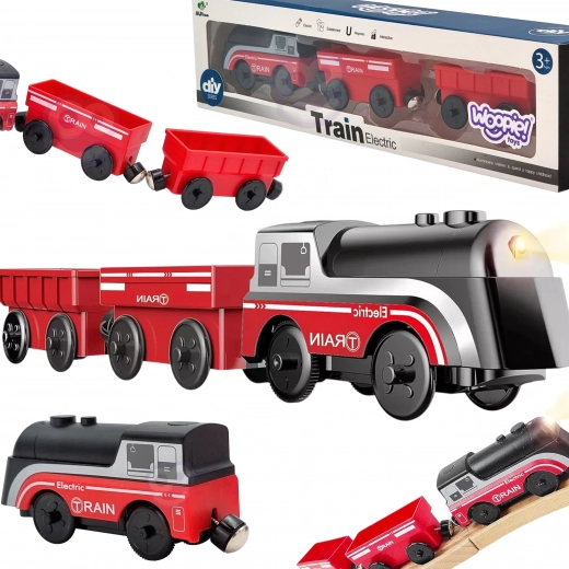 Zestaw wykorzystuje magnetyczne łączenie wagoników, co zapewnia szybkie i intuicyjne zestawianie składu. Lokomotywa jest zasilana jedną baterią AAA (brak w zestawie), podczas jazdy zapala światło i porusza się płynnie jak prawdziwy pociąg. Dzięki standardowemu rozstawowi jest kompatybilna z większością drewnianych torów (szerokość toru ok. 4 cm, szerokość osi ok. 2,5 cm) – doskonale uzupełnia zestawy IKEA, Brio i inne.