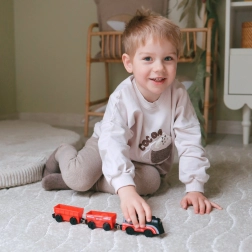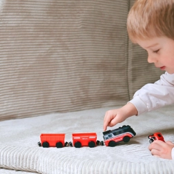 Mocne, a jednocześnie bezpieczne magnesy pozwalają dzieciom łatwo podłączać i odłączać wagony. Składanie pociągu jest szybkie i przyjemne.