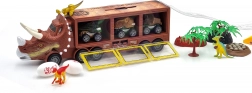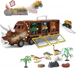 Nasza ciężarówka dinozaurów jest naprawdę niezwykła i idealna dla każdego dziecka, które uwielbia dinozaury i samochody. Dziecko może przenieść się do fantastycznego świata dinozaurów i przeżyć wiele przygód. Wewnątrz dużej ciężarówki znajdują się 3 małe samochodziki dinozaurów. Zestaw zawiera także wyrzutnię, która dodaje zabawie emocji. Wystarczy umieścić, kliknąć i wystrzelić!