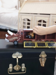 Zestaw zawiera także bogatą gamę dodatków, takich jak dinozaury, drzewa i kamienie. Ciężarówka jest wyposażona w efekty świetlne i dźwiękowe, które aktywują się za pomocą trzech przycisków. Każdy przycisk uruchamia inny dźwięk lub melodię i oświetla wnętrze przyczepy.
