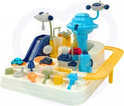 Interaktywna trasa w stylu kosmicznej bazy zamieni każdy dzień w ekscytującą misję. Dzieci manualnie uruchamiają mechanizmy, przełączają zwrotnice i za pomocą wyrzutni wysyłają pojazdy na orbitę. Dzięki solidnej konstrukcji i bezpiecznym krawędziom zabawka idealnie nadaje się do codziennej zabawy i rozwijania umiejętności.