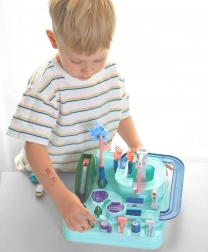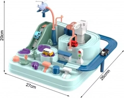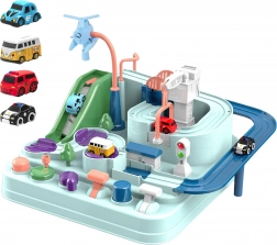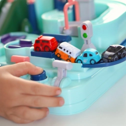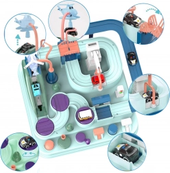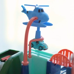W zestawie znajdują się trzy małe auta, które mogą swobodnie badać tor zgodnie z wyobraźnią małego gracza. Pojazdy urozmaicają zabawę lub pozwalają dzieciom rywalizować na torze. Droga przez tor może wydawać się łatwa, ale liczne elementy, takie jak przekładnie i zwodzone mosty, zapewniają, że droga stanie się pełna adrenaliny.<9v>