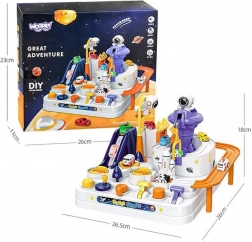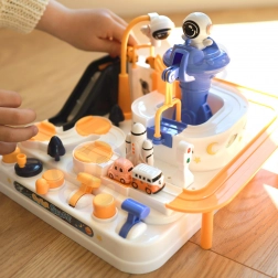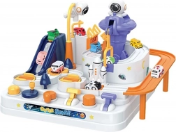 W zestawie znajdują się trzy autka (motyw przydzielany losowo), dzięki którym dzieci mogą bawić się solo, w sztafecie oraz organizować wyścigi na czas po różnych trasach stacji kosmicznej.