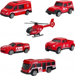 - transporter, 4 auta strażackie, helikopter, znaki ostrzegawcze