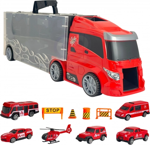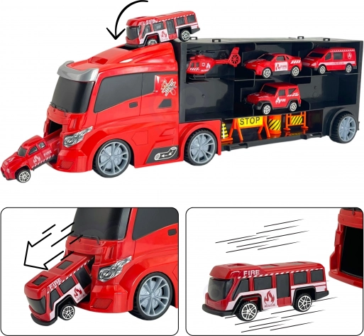 Transporter strażacki wspiera dziecięcą wyobraźnię i pozwala symulować różne scenariusze akcji ratunkowych.