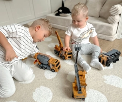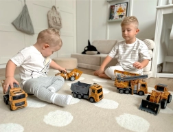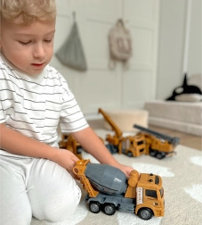 Każdy pojazd wyposażony jest w ruchome elementy, które naśladują prawdziwe maszyny budowlane, co sprzyja realistycznej zabawie.