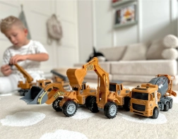 Z tym zestawem dzieci mogą odkrywać różne czynności budowlane i rozwijać swoją wyobraźnię. Zawiera sześć dużych pojazdów, każdy z ruchomymi częściami i realistycznymi detalami, które naśladują prawdziwe maszyny budowlane.