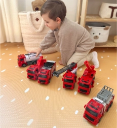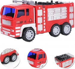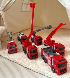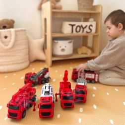 - 6 pojazdów w zestawie: wóz z drabiną, cysterna, dźwig, wóz gaśniczy, pojazd z wysuwanym koszem i ruchomą platformą, ciężarówka z podnoszoną/opuszczaną platformą.