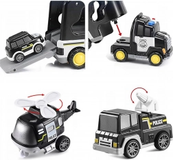 - 5‑elementowy zestaw policyjny: transporter + 4 pojazdy służbowe