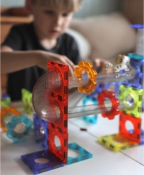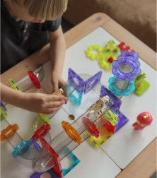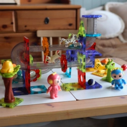 Magnetyczne komponenty umożliwiają łatwe i stabilne łączenie poszczególnych części, co zapewnia dzieciom różnorodne wrażenia z budowania.