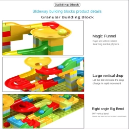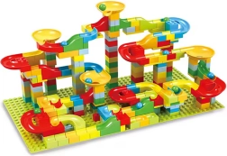 Klocki, tory, zjeżdżalnie, lejki, kulki, narzędzie do rozdzielania klocków