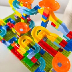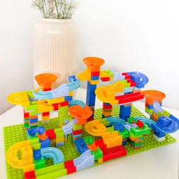 Kompletny pakiet z wieloma torami, zakrętami, lejkowymi zjazdami i kulkami. Buduj proste i złożone trasy dokładnie według własnych pomysłów.