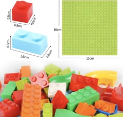 Dwie duże podstawy 16 × 16 cm pewnie utrzymują budowlę na miejscu, dzięki czemu dzieci mogą bez obaw bawić się i eksperymentować.