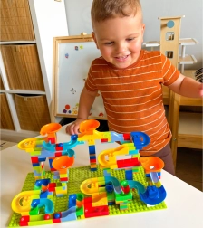 Budowanie toru wspiera koordynację ręka–oko, rozwija małą motorykę, koncentrację oraz twórcze myślenie dzieci.