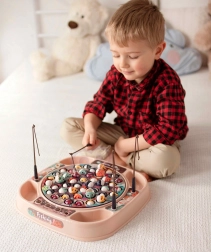Popularna gra zręcznościowa w łowienie rybek w nowoczesnym wydaniu. Po włączeniu plansza z rybkami powoli obraca się w rytm muzyki, a niektóre rybki się otwierają – to właściwy moment, aby złowić je wędką. Wyraziste kolory i dynamiczna rozgrywka natychmiast przyciągają uwagę dzieci i wspierają zdrową rywalizację.