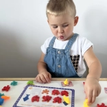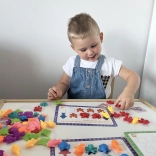 W zestawie znajduje się łącznie 111 elementów, w tym 16 kart zadań, dzięki którym dzieci uczą się układać i liczyć. Różnokolorowe morskie figurki (np. czerwone delfiny, żółte rybki, fioletowe kraby) pobudzają wyobraźnię i zwiększają interakcję z dzieckiem. Wszystko to w bezpiecznym środowisku dzięki gumowym figurkom.