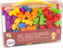 Zestaw edukacyjny Zwierzęta marki WOOPIE oferuje prostą i efektywną pomoc do nauki i zabawy. Gra polega na matematycznych zadaniach z kartami z poleceniami z wykorzystaniem figurek i mazaka. Gra wspiera naukę liczenia i rozwój rozpoznawania kolorów poprzez zabawę, co jest świetną alternatywą dla tradycyjnej nauki!