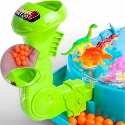 - Bogate wyposażenie – arena z osłoną, 2 wyrzutnie, 24 kuleczki i 16 figurek dinozaurów.