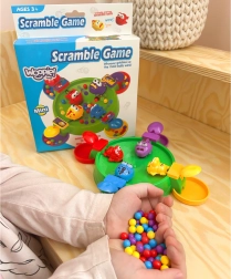 Zabawna gra stołowa Woopie dla dzieci od 3 lat rozwija małą motorykę, szybkie reakcje oraz koordynację ręka-oko. Celem jest nakarmić swoją postać jak największą liczbą kolorowych kuleczek za pomocą przycisku uruchamiającego mechanizm chwytania. Gra jest szybka, kolorowa i interaktywna, odpowiednia dla 1–4 graczy, idealna na rodzinną zabawę i w podróż.