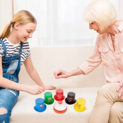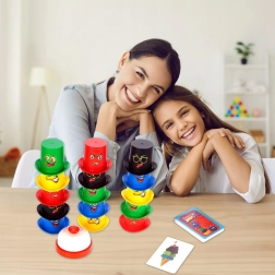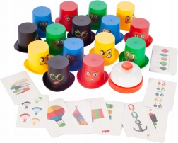 Zasady gry: Każdy gracz otrzymuje 5 kolorowych czapek i stara się jak najszybciej ułożyć je według wzoru na karcie. Jak tylko zadanie zostanie wykonane, szybko zadzwoń dzwonkiem! Wygrywa gracz z najlepszym refleksem i spostrzeżeniami.