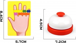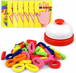 Kolorowe gumki zakłada się na palce zgodnie z wzorami na kartach – dzieci w zabawny sposób ćwiczą precyzję, zręczność i koordynację oko–ręka.