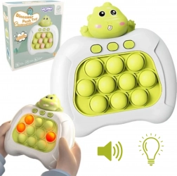 Elektroniczna antystresowa gra POP IT – dinozaur to idealny towarzysz w podróży i w domu. Dzięki kompaktowym wymiarom łatwo zmieścisz ją w plecaku. Efektowne światła i radosne dźwięki motywują do zabawy i wydłużają koncentrację dzieci.