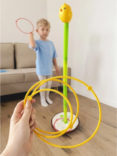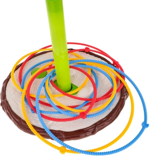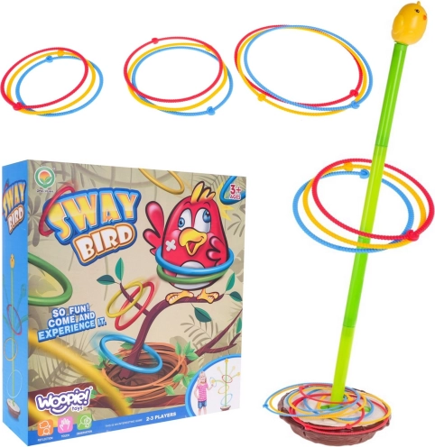 Złóż kolorowy stojak z uroczym ptaszkiem, wybierz wysokość i zaczyna się zabawa! Gracze na zmianę rzucają i próbują umieścić swoje obręcze na drążku. Proste zasady, szybkie kolejki i świetny trening refleksu sprawiają, że to idealny wybór do zabawy w domu i na dworze.