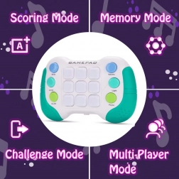 Elektroniczna gra POP-IT fidget gamepad WOOPIE oferuje dzieciom wciągające połączenie świateł, dźwięków i grywalności. Dzięki kilku trybom dzieci ćwiczą pamięć, spostrzegawczość i logikę, a ergonomiczny kształt i przyjemne w dotyku przyciski wspierają małą motorykę. Wysoka jakość wykonania z trwałego ABS zapewnia długą żywotność.