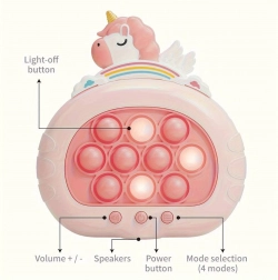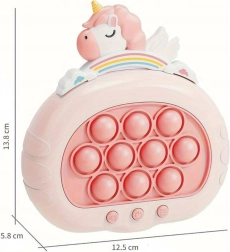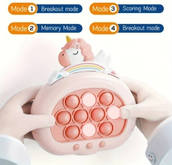 Elektryczna gra Jednorożec Pop It to świetna zabawa i środek rozwoju dla dzieci od trzeciego roku życia. Dzieci i dorośli cieszą się z naciskania bąbelków i rywalizacji. Gra Pop It oferuje różne tryby gry, które rozwijają różne umiejętności: