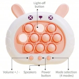 Zabawna i interaktywna gra POP IT Króliczek przynosi radość zarówno dzieciom, jak i dorosłym. Rozwija umysł, zdolności manualne, koordynację ręka-oko i pomaga w walce ze stresem. Ta zabawka oferuje cztery różne tryby gry, które trzymają każdego w napięciu.