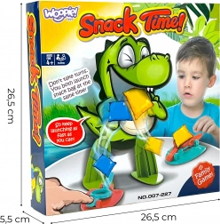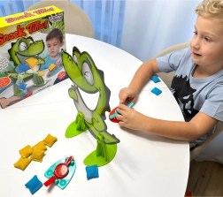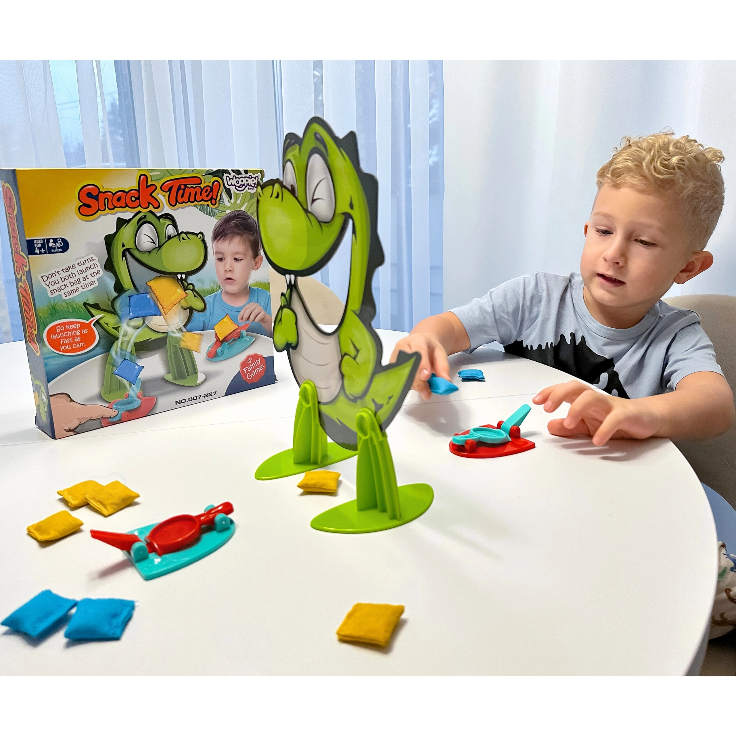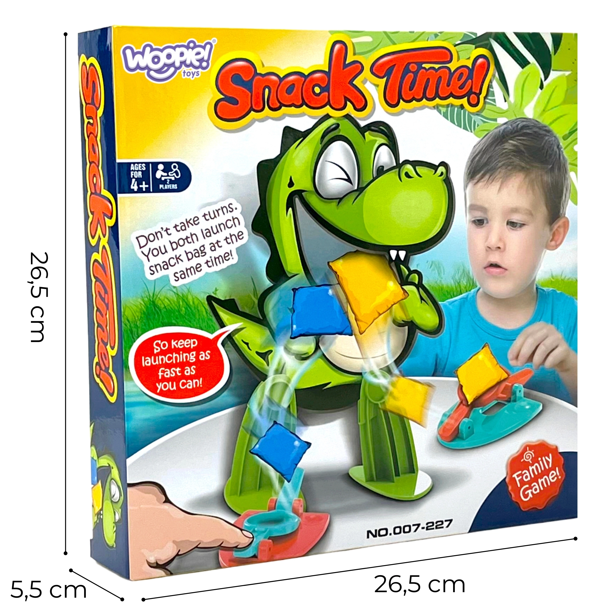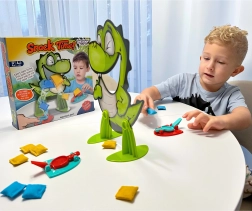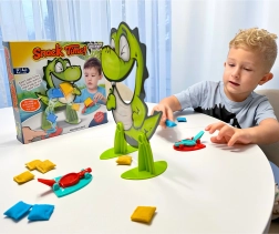 Rozruszaj rodzinny wieczór z grą zręcznościową Woopie Głodny dinozaur. Kolorowy dinozaur staje się celem, a dwóch graczy, korzystając z prostych wyrzutników, posyła miękkie woreczki do jego paszczy. Dzięki szybkiemu tempu gra jest świetna dla dzieci od 4 lat i dorosłych – zasady zrozumiesz w mgnieniu oka.