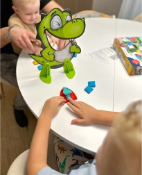 - Szybka zabawa dla 2 graczy: pojedynek o to, kto „nakarmi” dinozaura szybciej.