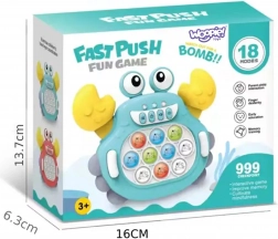 Elektroniczna zabawka Pop It Krab to świetny sposób, aby rozwijać umysł, zręczność manualną i koordynację u dzieci. Dzięki kompaktowej konstrukcji możesz zabrać ją wszędzie. Zabawka jest przeznaczona dla dzieci od 3. roku życia i oferuje aż 999 poziomów, które zapewnią mnóstwo zabawy także dorosłym.