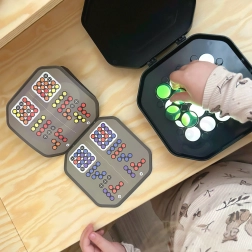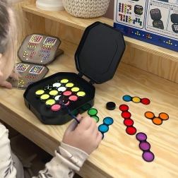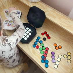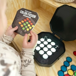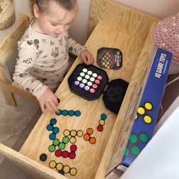Odkryj sprytnie zaprojektowaną grę, która łączy logiczne wyzwania z kolorową kreatywnością. Dzieci układają przezroczyste krążki według kart ze wzorami i dzięki podświetlanej planszy obserwują, jak kolory warstwują się i mieszają. Gra naturalnie rozwija wyobraźnię przestrzenną, koordynację oko–ręka i uczy planować kroki do przodu.