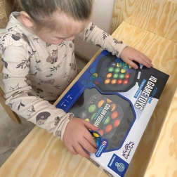 W zestawie znajdziesz 50 wzorów od łatwych po trudne. Kompaktowe i trwałe wykonanie pasuje do dziecięcego pokoju i do plecaka w podróż. Wystarczy wybrać kartę, włączyć podświetlenie i zacząć układać – sukces przyjdzie, gdy wzór na planszy dokładnie pokryje się z kartą.