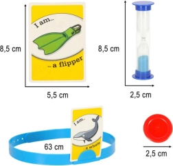Wytrzymałe opaski wygodnie utrzymują kartę na głowie, klepsydra nadaje rundom tempo, a żetony pomagają w liczeniu punktów. Idealny zestaw do dynamicznej i emocjonującej rozgrywki dla dwojga.