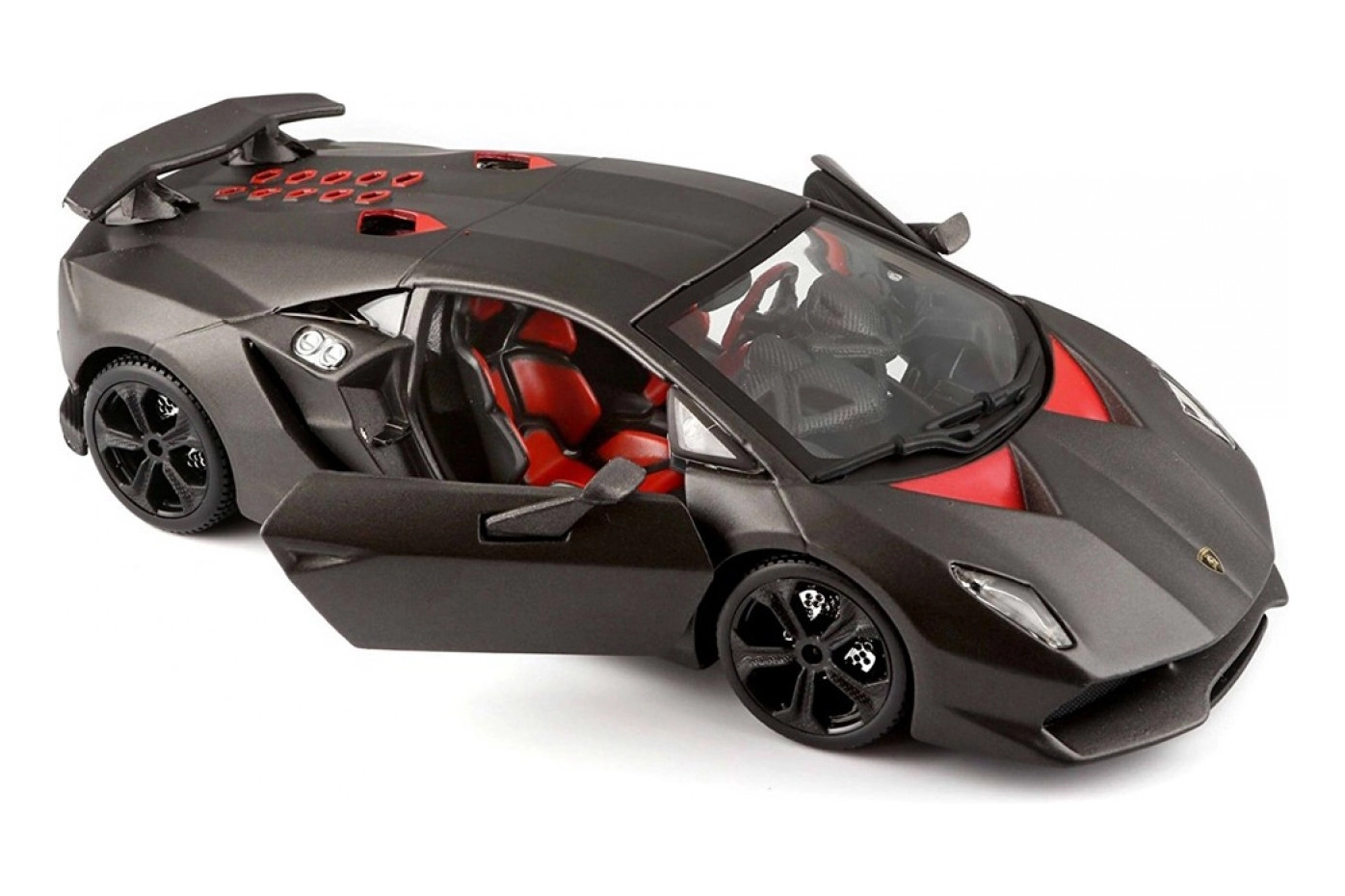 Model Bburago 1:24 wiernie oddaje agresywne linie supersamochodu LAMBORGHINI Reventón w eleganckim metalicznym szarym kolorze. Dzięki otwieranym nożycowym drzwiom i dopracowanemu wnętrzu doskonale sprawdzi się jako stylowa dekoracja do gabloty oraz wytrzymała zabawka dla małych miłośników motoryzacji.