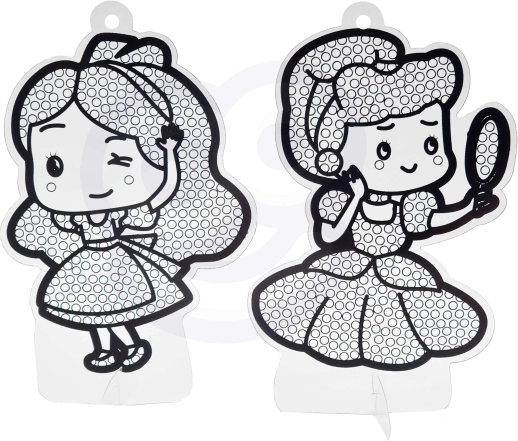 - 12 naklejek (ok. 6–7 cm) i 2 duże zawieszki (ok. 17,5–19,5 cm) z warstwą klejącą