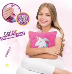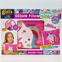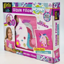 Kreatywny zestaw Woopie ART&FUN oferuje dzieciom zabawne szycie i ozdabianie poduszki z motywem jednorożca. W opakowaniu znajdziesz wszystko, co potrzebne – poszewkę, poduszkę, cekiny, igłę i nić. Gotowa poduszka ma magiczny efekt: po pogłaskaniu zmienia kolor. Świetny wybór dla rozwoju kreatywności, wyobraźni i małej motoryki już od 5 lat.