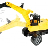 Żółta i czarna zabawkowa koparka firmy Lena jest wykonana z wysokiej jakości plastiku i spełnia europejskie normy. Wyposażona jest w ruchome ramię oraz obrót 360 stopni dla realistycznej zabawy.