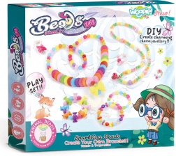 Ten kreatywny zestaw pozwoli Twojemu dziecku stworzyć własne naszyjniki, bransoletki i pierścionki. Dzięki różnym typom i rozmiarom koralików, zwierzęcym zawieszkom i sznurkom dzieci mogą eksperymentować i tworzyć oryginalną biżuterię. Zestaw zapakowany jest w kolorowe pudełko, które służy jako świetny organizer do przechowywania małych elementów. Kompletny zestaw jest lekki i łatwy do przenoszenia, co pozwala dziecku zabrać go ze sobą wszędzie.